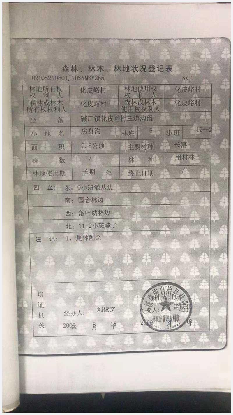 95號 本溪滿族自治縣堿廠鎮(zhèn)化皮峪村三道溝林權(quán)