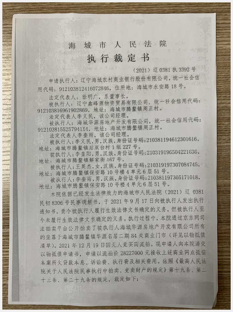 地址:海城市騰鰲鎮(zhèn)保安街道辦 標的號:159
