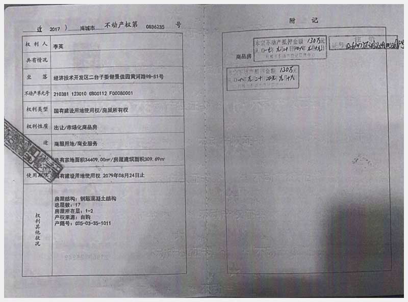 188號(hào) 海城經(jīng)濟(jì)技術(shù)開發(fā)區(qū)二臺(tái)子委儷景佳園黃河路98-S1號(hào)房產(chǎn)