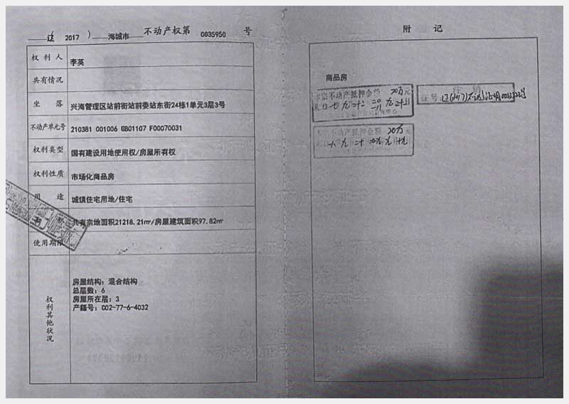186-2號(hào) 海城市興海管理區(qū)站前街站前委站東街24棟1單元3層3號(hào)房產(chǎn)