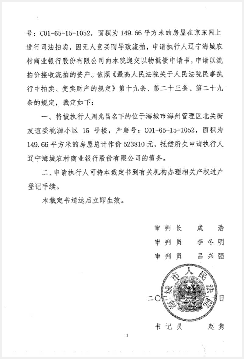 地址:海城市海洲管理區(qū)北關(guān)街友誼委桃源小區(qū) 標(biāo)的號(hào):200
