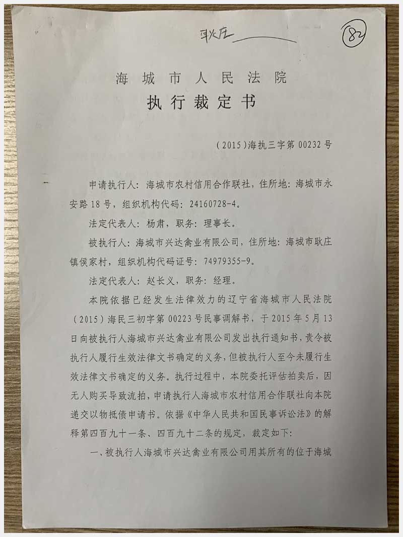 82號(hào) 海城市耿莊鎮(zhèn)侯家村房產(chǎn)及國(guó)有土地使用權(quán)